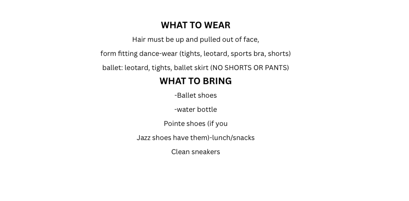 trained in ballet, jazz, lyrical, tap, musical theater, hip hop, contemporary, modern, improvisation,